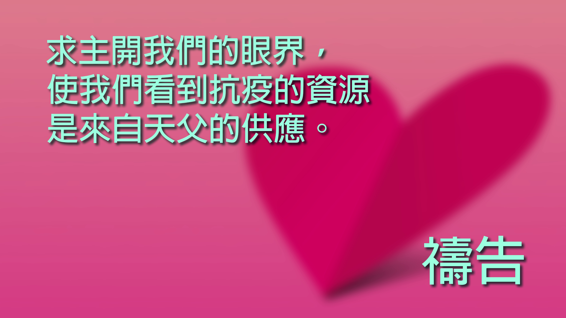 求主開我們的眼界,使我們看到抗疫的資源是來自天父的供應。